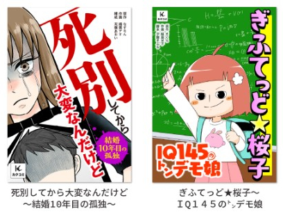 「無職ですが子どもを連れて逃げました」をはじめとする、エッセイマンガ中心のコミックレーベルです。ピッコマ、LINEマンガ、コミックシーモア、めちゃコミ!などの電子書店で絶賛配信中!編集部と一緒に、作家さんの個性を大切にした作品づくりを行っています。あなたも、マンガ家としてカクコミでデビューしませんか?